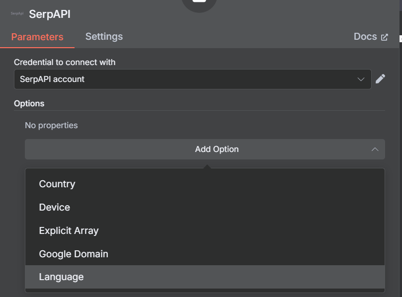 SerpAPI 在 Options 中提供以下選項: