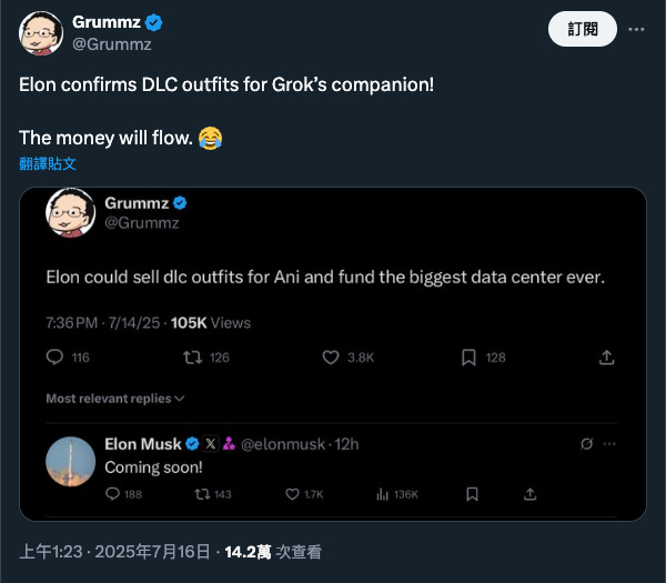 當然 Grok 這種套皮的 AI 不只是串個 API 這麼簡單,它是將 3D 動畫角色、多模態交互和情感計算技術結合在一起。基於 xAI 最新的 1.7 萬億參數語言模型,採用多智能體協作架構,能夠進行更複雜的推理和情感表達。