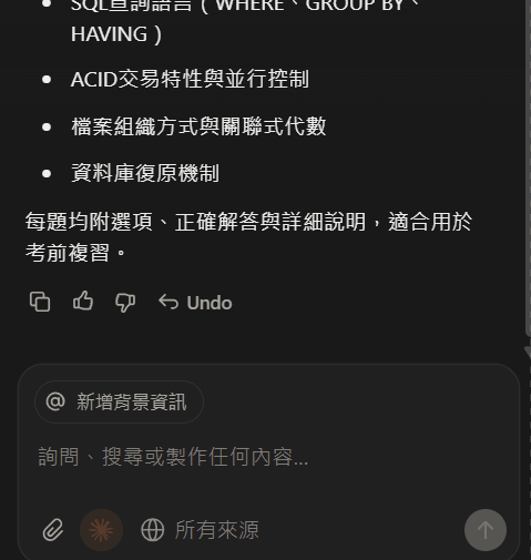 如果有需要它模仿考題格式,就另外下載考古題,讓他模仿出題。