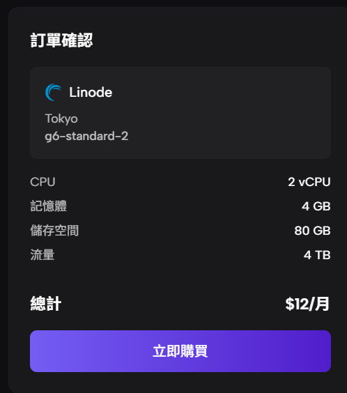 只是買了之後,才又看到 Zeabur 老闆在 Threads 上有提到說最好不要選騰訊雲的,因為雖然騰訊雲的伺服器才 2 美金起跳,很便宜,可是他們家伺服器的效能也相對比較不好。老闆建議選擇 Linode 。